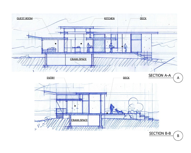 - The single-level home of 1,900 square feet is slightly elevated above the surrounding grade, which will give the occupants the sense of being perched above the landscape.